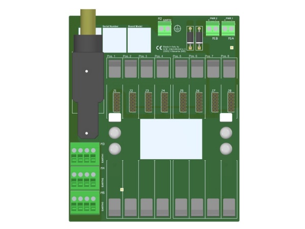This Termination Board (TB) provides direct connection between the I/O Card of the system and D5000 Series modules. The Intrinsically Safe protection and signal isolation between Safe and Hazardous Area, is provided by D5000 Series Associated Apparatus. The 24 Vdc Power Supply of the TB is connected to two plug-in terminal blocks, for a redundant power supply. The power supply for modules is given by TB power bus.