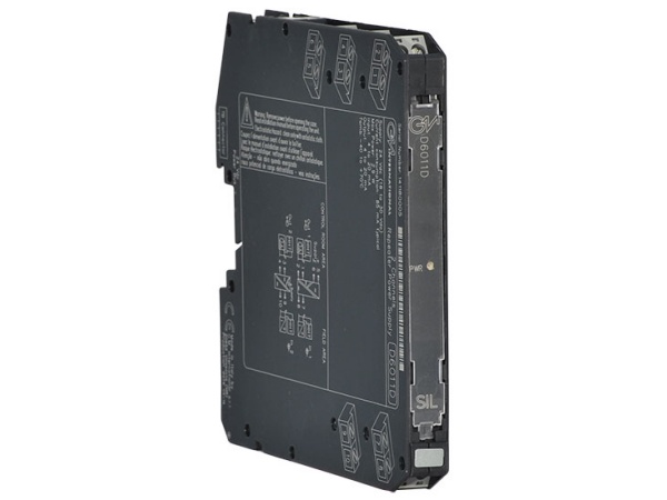 The Isolating Driver D6020 module is a high integrity analog output interface suitable for applications requiring SIL 2 level in safety related systems for high risk industries. It isolates and transfers a 4- 20 mA signal from a controller to a load. It has a high output capacity combined with a low drop across its input terminals. The circuit allows bi-directional communication signals, for HART® smart positioners. Line and load open/short circuit detection is provided: the fault in the field is directly mirrored to the PLC AO and it is also reported by opening the fault output.