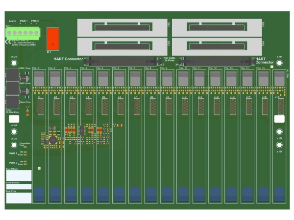 This Termination Board (TB) provides direct connection between the I/O Card of the system and D5000 Series modules. The Intrinsically Safe protection and signal isolation between Safe and Hazardous Area is provided by D5000 Series Associated Apparatus. The 24 Vdc Power Supply of the TB is connected to two plug-in terminal blocks, for a redundant power supply. The power supply for modules is given by TB power bus.
