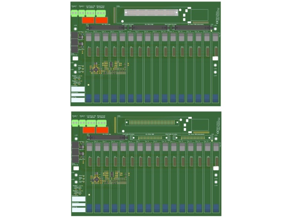 This Termination Board (TB) provides direct connection between the I/O Card of the system and D5000 / D6000 Series modules. The Intrinsically Safe protection and signal isolation between Safe and Hazardous Area, is provided by D5000 Series Associated Apparatus. The 24 Vdc Power Supply of the TB is connected to two plug-in terminal blocks, for a redundant power supply. The power supply for modules is given by TB power bus.