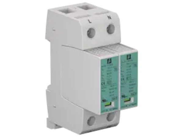 Surge protection for 2 supply lines, Type 2 acc. to EN 61643-11, For TN systems (230 V AC), Pre-wired unit, Operating state and fault indication