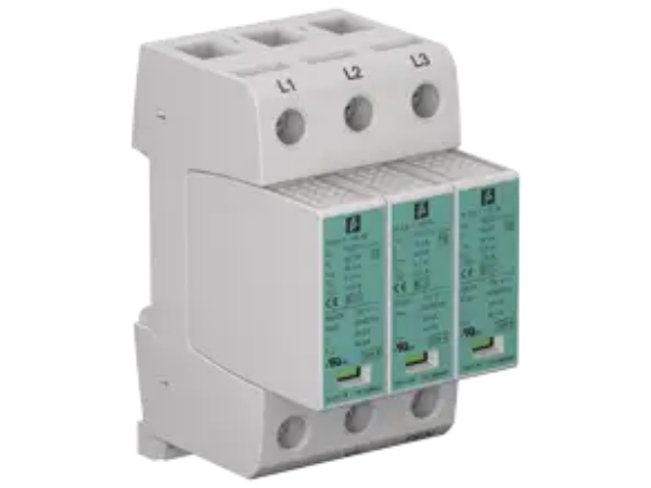 Surge protection for 3 supply lines, Type 2 acc. to EN 61643-11, For TN-C systems (120 V AC/240 V AC), Pre-wired unit, Operating state and fault indication